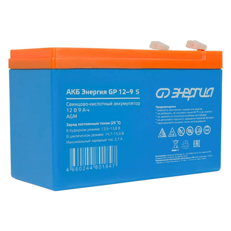 Аккумулятор Энергия GP 12-9 S изготовлен по технологии AGM и предназначен для эксплуатации в буферном режиме в устройствах бесперебойного электропитания, охранной и пожарной сигнализации, информационных и телекоммуникационных системах и других типах оборудования, при работе которых не допускается перерывов в электропитании.