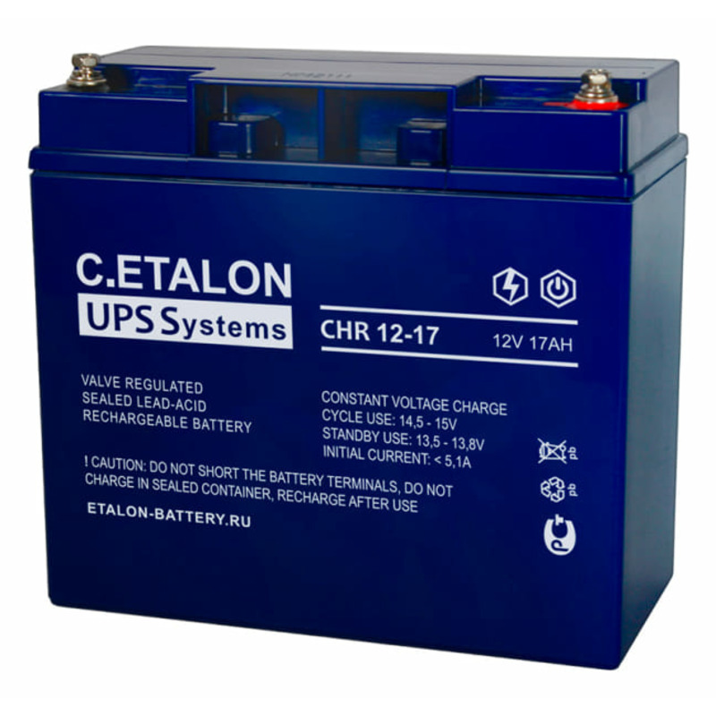 Аккумулятор ETALON CHR 12-17 является стационарным свинцово-кислотным необслуживаемым и изготовлен по технологии AGM. Серия C.ETALON спроектирована под применение в источниках бесперебойного питания. Отличительная особенность – повышенные разрядные характеристики.