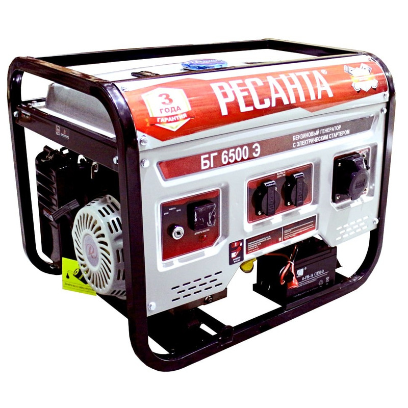 Бензиновый генератор БГ 6500 Э Ресанта - электрическая машина, предназначенная для автономного электроснабжения в повторнократковременном режиме потребителей бытового и аналогичного назначения, относящихся к классу переносных электроприемников. В качестве первичного двигателя используется карбюраторный двигатель, топливом для которого является неэтилированный бензин. Электрогенератор РЕСАНТА имеет бытовое назначение.