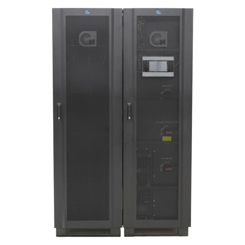 Модульный ИБП СИП380А500МД20.10-33/50 двойного преобразования, с трехфазным входом и выходом, полной мощностью 500 кВт. Предустановлено десять силовых модулей мощностью по 50 кВт. Подключение внешнего батарейного кабинета. Выходной коэффициент мощности 1,0.