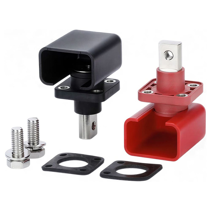 Клеммы для LFP-аккумулятора 50А, 1000В (штырьковые, пара красн+черн) поддерживают 50 А и 1000 В постоянного тока. Являются универсальным выбором для различных решений по хранению энергии литиевых батарей, обеспечивая оптимальную производительность в различных настройках. Коннектор крепится 4-мя винтами к корпусу батареи. От нижней части коннектора идет провод к плате BMS. К верхней части подключается провод потребителя через наконечник на конце.