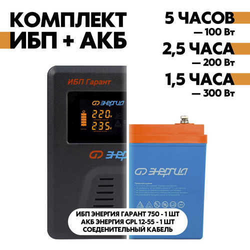 Комплект ИБП Энергия Гарант 500 + Аккумулятор Delta DTM 12100L