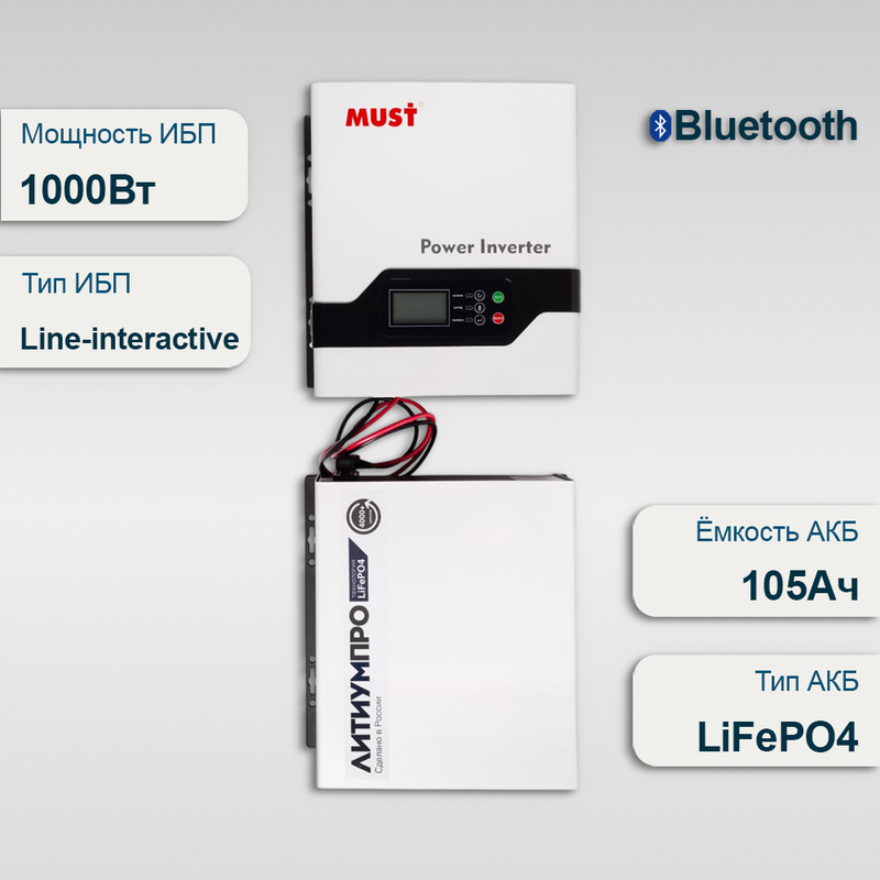 Комплект ИБП Must EP20-1000 PRO + АКБ ЛИТИУМПРО LFP 12-105TW-100