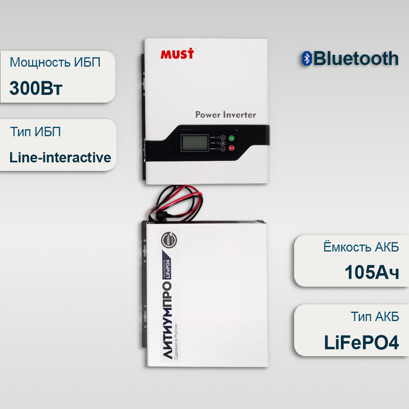 Комплект ИБП Must EP20-300 PRO + АКБ ЛИТИУМПРО LFP 12-105TW-60