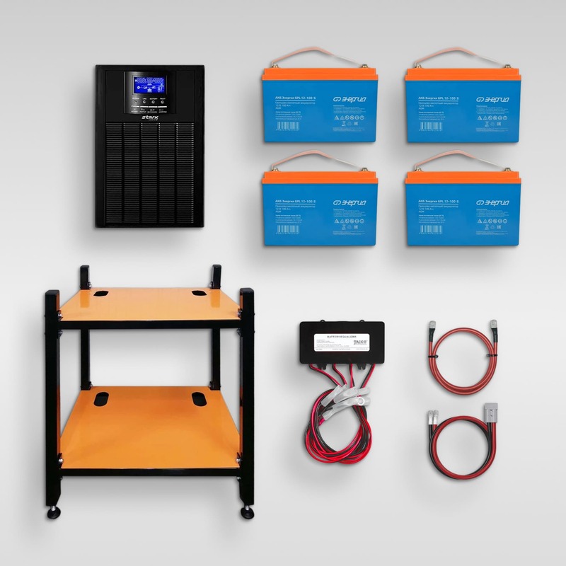 Комплект ИБП Stark Country 5000 Online LT (60А) + АКБ Энергия GPL 12-100 S (4шт) + Стеллаж Сатурн 600х450х350