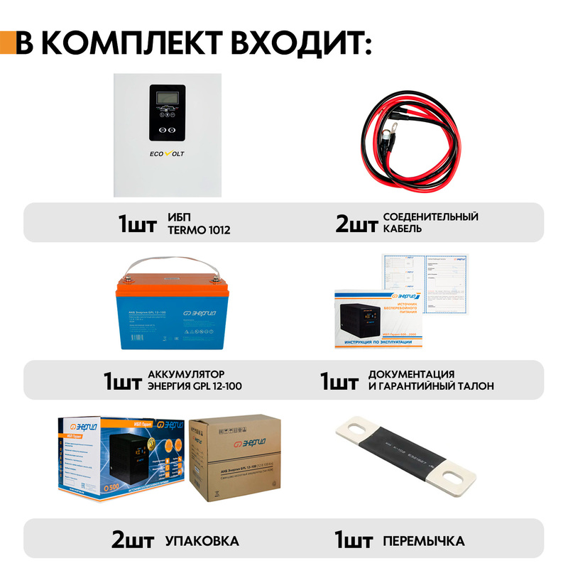 Комплект ИБП Ecovolt SMART 312 + Аккумулятор Vektor GPL 12-55 для котла