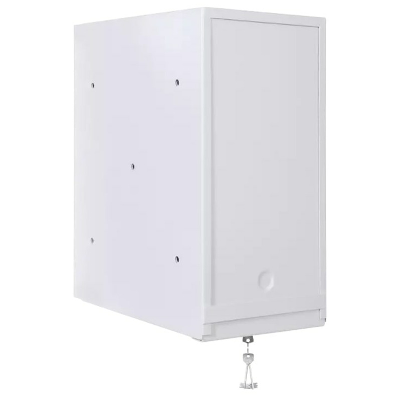 Шкаф имеет цельнометаллическую сварную конструкцию, выполнен из стали толщиной 1,5 мм. Дверь пенального типа имеет ребра жесткости и удобную ручку-углубление. Фиксируется замком, стойким к подбору ключей и механическим повреждениям.